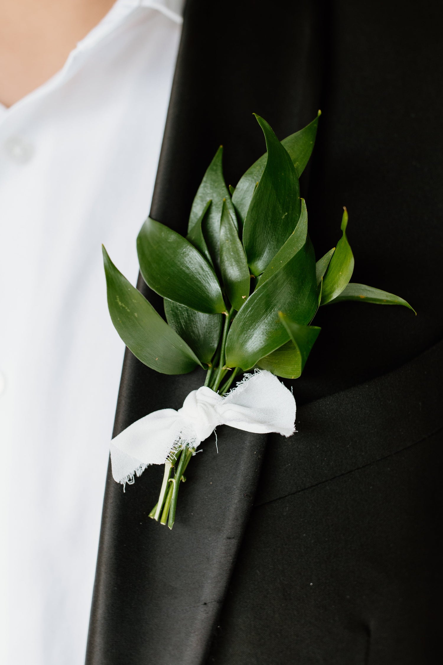 A delicate, smaller boutonniere designed for junior groomsmen, ring bearers, or for groomsmen when the groom has chosen the Classic Boutonniere. Designed using only filler flower and greenery, these boutonnieres are tied with a simple ribbon for a refined finish.