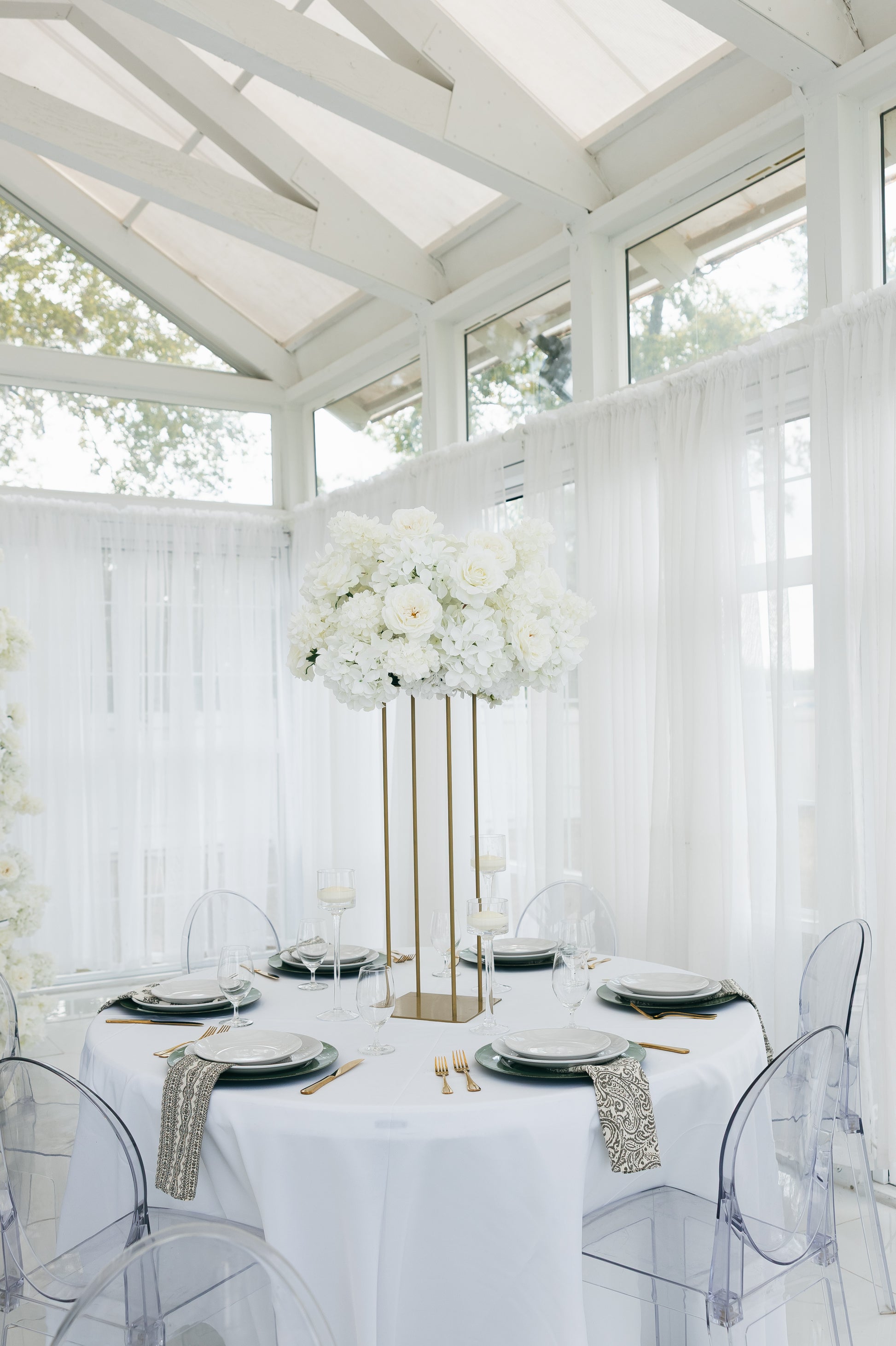 Our Pearl Meadows are highly versatile! They can line an aisle, frame a ceremony, enhance a sweetheart table or be used as centerpieces on tabletops or displayed on metal stands. The all-white palette works with any décor style and in any venue.